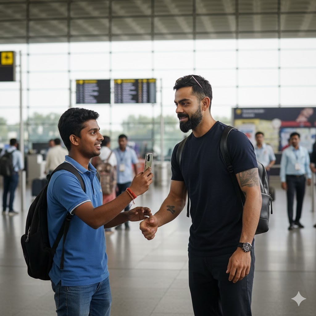 Prompt 10:- Virat Kohli Airport Look with Fan