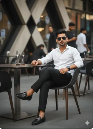 “A cinematic portrait of a stylish young man leaning casually on a terrace railing at sunset(use reference photo), wearing a deep maroon corduroy shirt with rolled-up sleeves, beige cargo pants, sunglasses, and a golden wristwatch. He gazes to the side with confidence, bathed in warm golden light. In the background, misty mountains and a pastel-colored sky fade into the horizon, creating a dreamy, cinematic atmosphere face white full body Trending Gemini Boys AI Photo Editing Prompts